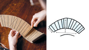 Now start shaping the cardboard base by folding it according to the markings on the template.